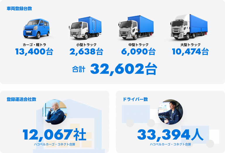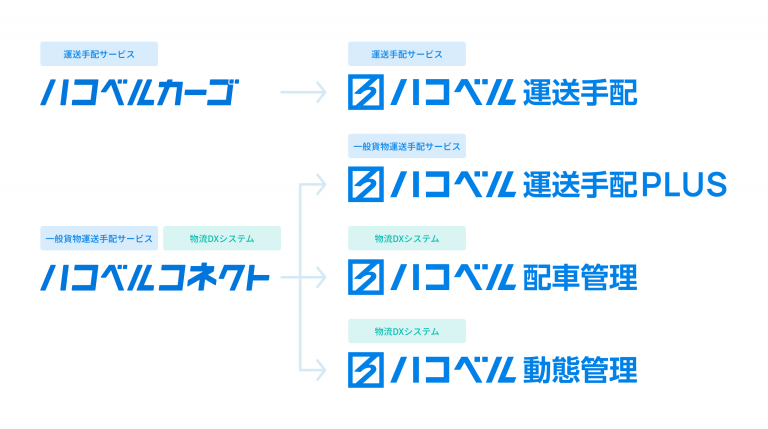 など、軽貨物だけではなく一般貨物の領域から物流DXシステムまでを扱っています。以前まで「ハコベルカーゴ」という名称で軽貨物のマッチングサービスを行っていましたが、2023年4月3日に名称変更されています。