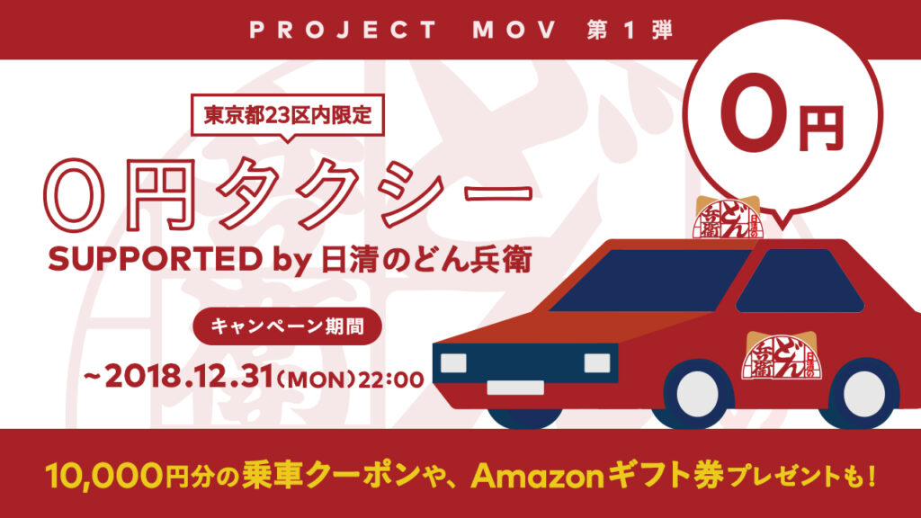 株式会社ディー・エヌ・エー(DeNA)が展開する次世代タクシー配車アプリ「MOV」によるものですが、お客様は0円でタクシーを利用することができるのです。これは利用料金に代わるものを広告宣伝費から捻出するといった形かと思われますが、無償で運送業を行うということになりそうです。