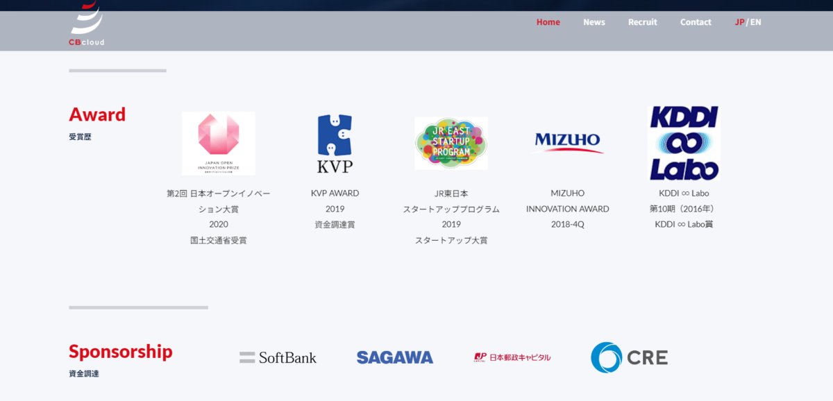 出典:CBcloud株式会社:受賞歴・資金調達