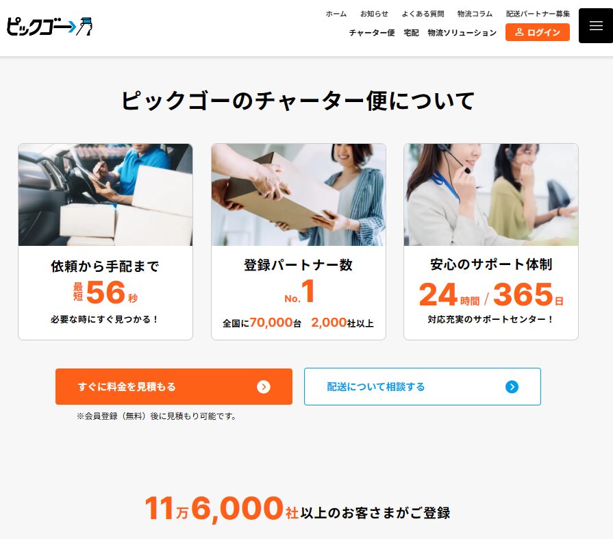 出典:CBcloud株式会社:「ピックゴー」のチャーター配送